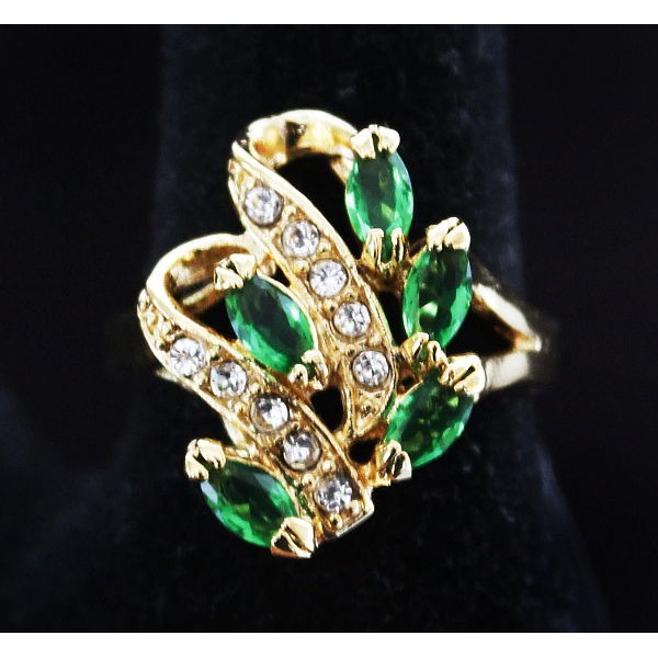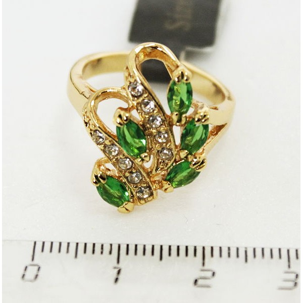Кольцо с цирконом зеленым "5 рис волна"