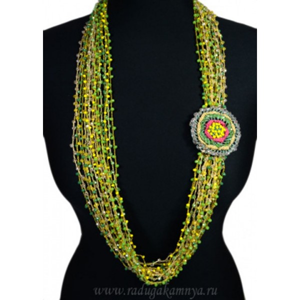 Колье 18 нитей с цирконами цвет желто-зеленый, 100см.