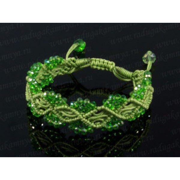 Браслет плетеный с цирконами зелёный 3