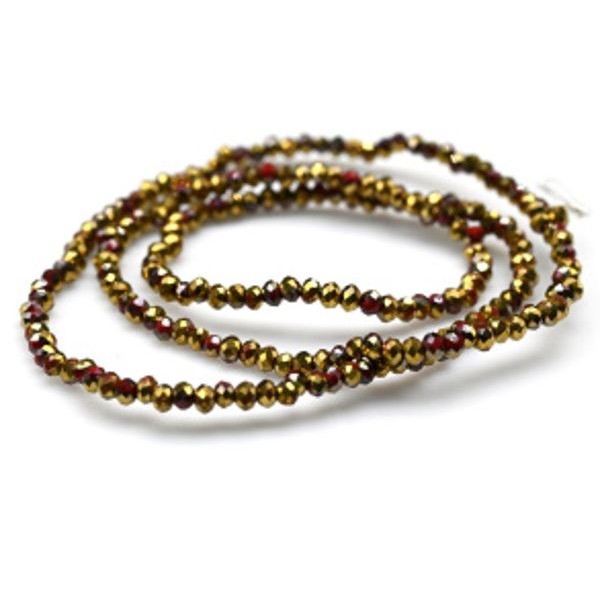 Бусины из циркона рондель гр.2мм цвет золотисто-красный, 34см, 185 бусин (иск.)