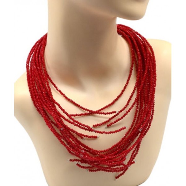 Колье -пластрон Лапы из циркона 20 нитей цвет красный, 50см (иск.)