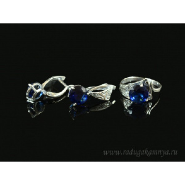 Кольцо и серьги с цирконом искусственным, цвет синий (иск.)