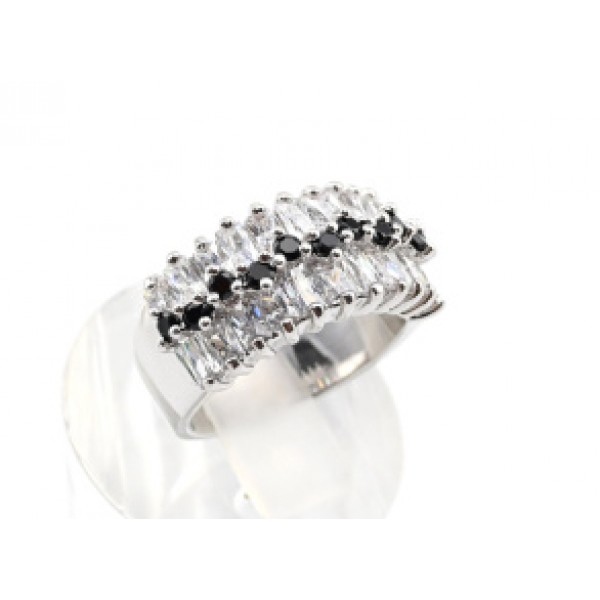 Кольцо РП c цирконом чёрным "ручеёк" (иск.)