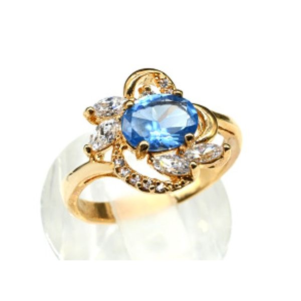 • Кольцо позолота с голубым цирконом и стразами,  (иск.)