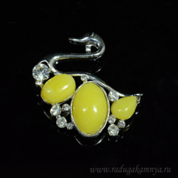 • Кулон с янтарем и цирконом Лебедь 40*40мм молочно-медовый. (иск.)