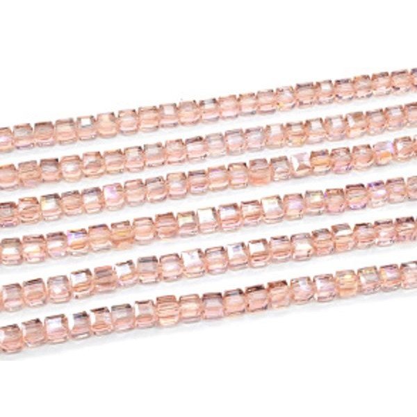 Бусины из циркона кубик гр.7*7мм цвет розовый светлый, 39,5см, 55 бусин