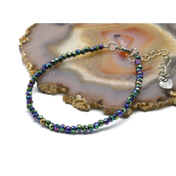 • Браслет из циркона шарик гр.3мм цвет хамелеон, 18см (иск.)
