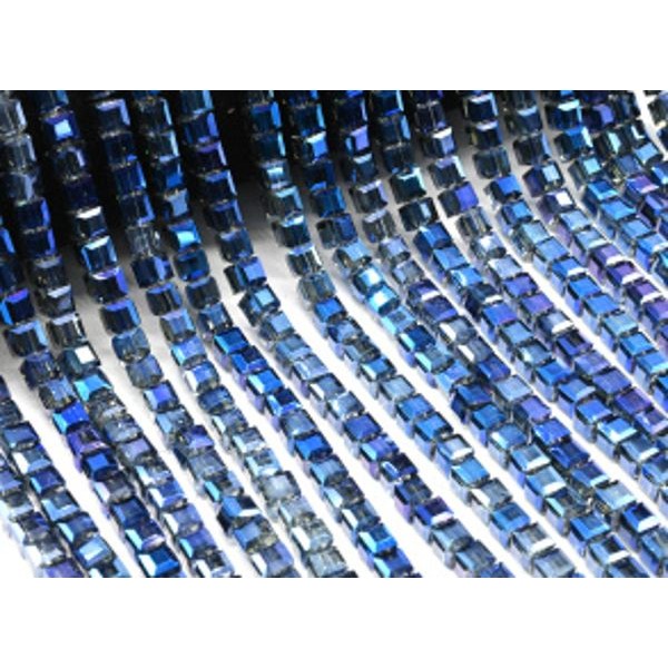 Бусины из циркона кубик гр.6*6мм цвет синий хамелеон, 40см, 70 бусин