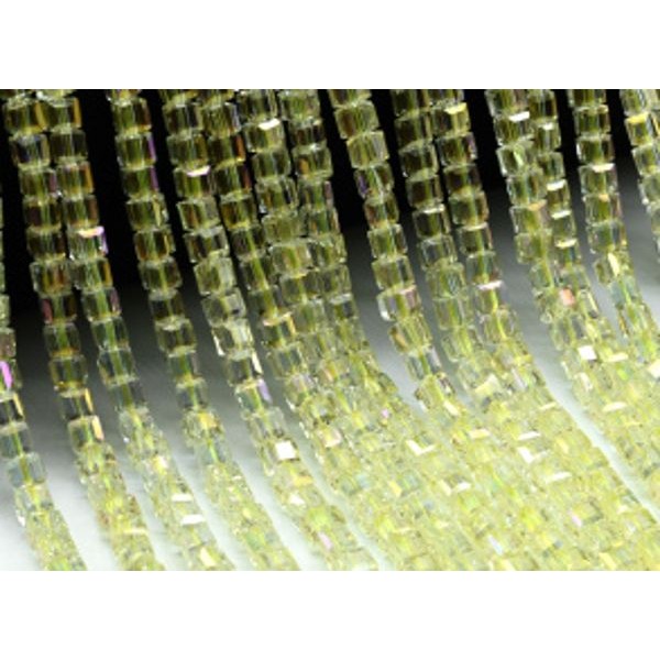 Бусины из циркона кубик гр.4*4мм цвет лимонный хамелеон, 40см, 100 бусин