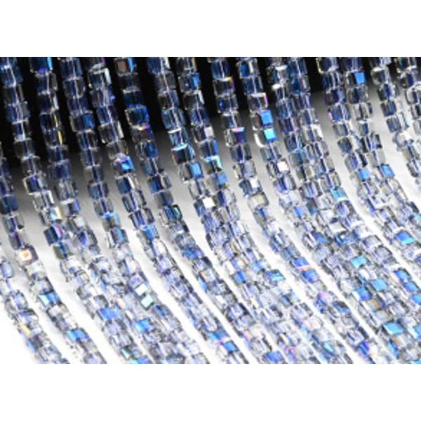 Бусины из циркона кубик гр.4*4мм цвет синий хамелеон, 40см, 100 бусин