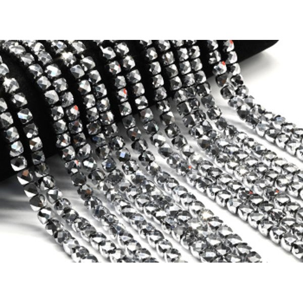 Бусины из циркона кубик гр.6*6мм цвет серебристый 40см, 64 бусин (иск.)