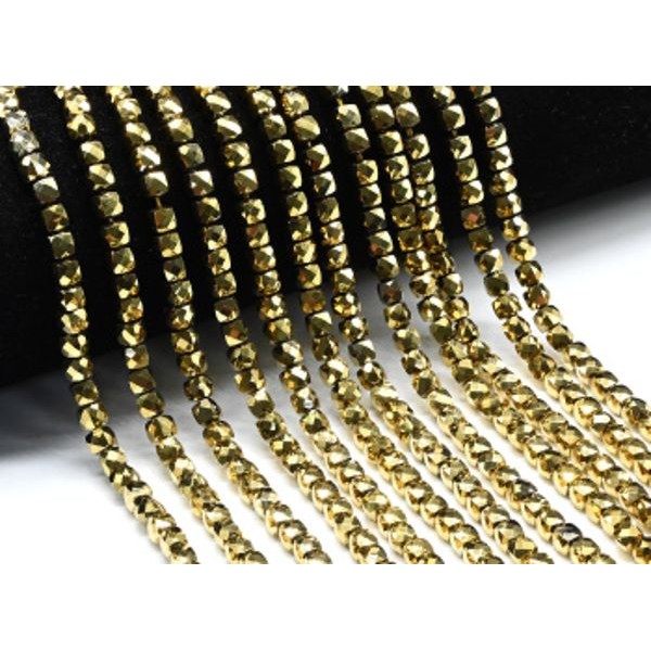 Бусины из циркона кубик гр.5*5мм цвет золотистый, 40см, 85 бусин (иск.)