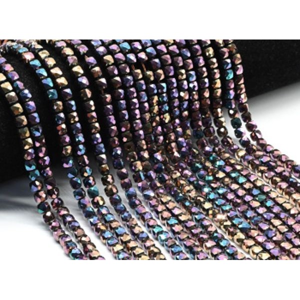 Бусины из циркона кубик гр.5*5мм цвет шоколадный хамелеон, 40см, 85 бусин (иск.)