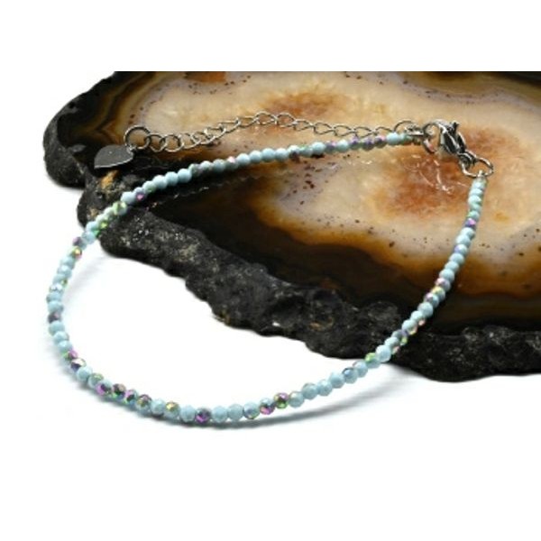 Браслет из циркона шарик гр.2мм цвет голубой, 19см (иск.)