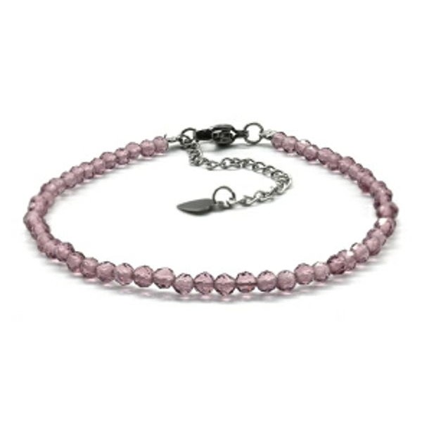 Браслет из циркона шарик гр.3мм цвет сиреневый, 17см (иск.)