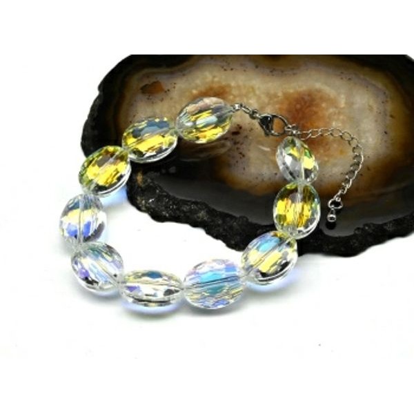 • Браслет из циркона овал 12*16мм, цвет хрусталь хамелеон, 18см (иск.)