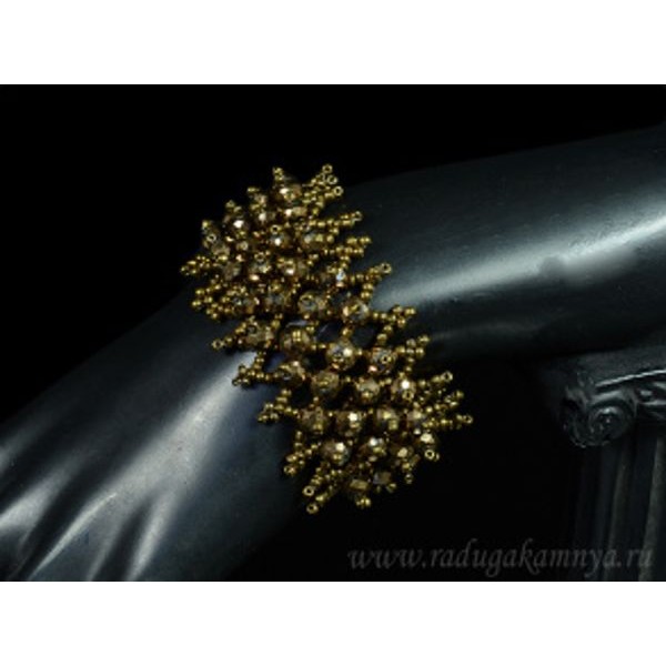 • Браслет плетеный из бисера с цирконом цвет медный, 18см.