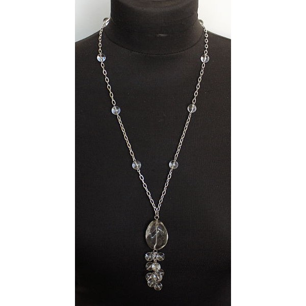 Колье из горного хрусталя на цепочке, бусина крупная огранка 30мм