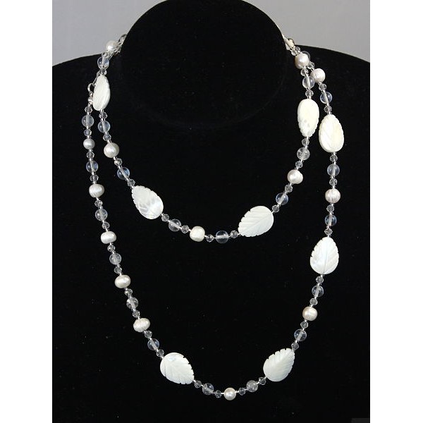 Колье длинное 90см из горного хрусталя, перламутра белого, жемчуга белого