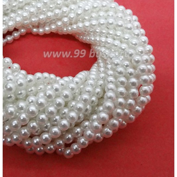 Бусина стеклянная жемчуг на нити 4 мм цвет белый Чехия 60 штук