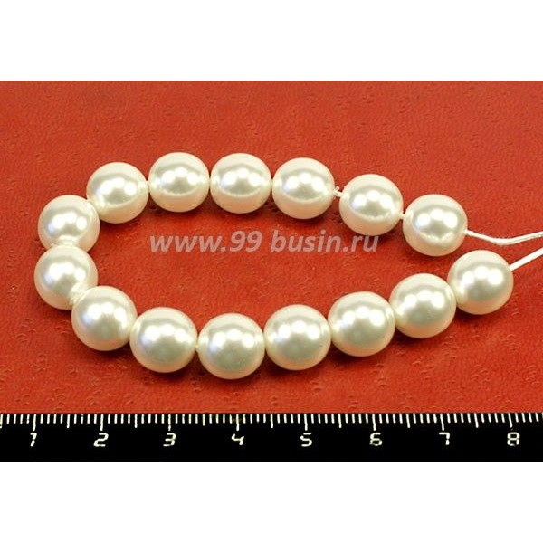 Бусина стеклянная жемчуг на нити 10 мм цвет белый Чехия 15 штук /упаковка