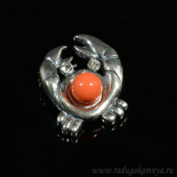 Брошь с майоркой " Краб " в мельхиоре, цвет оранжевый 18*22мм.