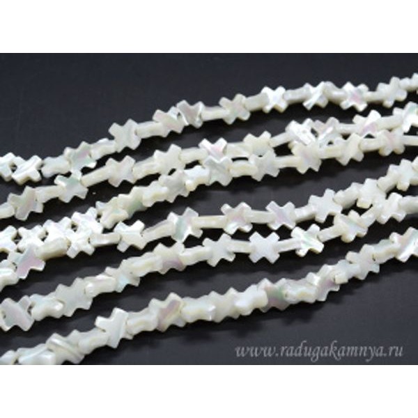 • Бусины из перламутра форма 10*10мм, цвет белый, 32см, 46 бусин
