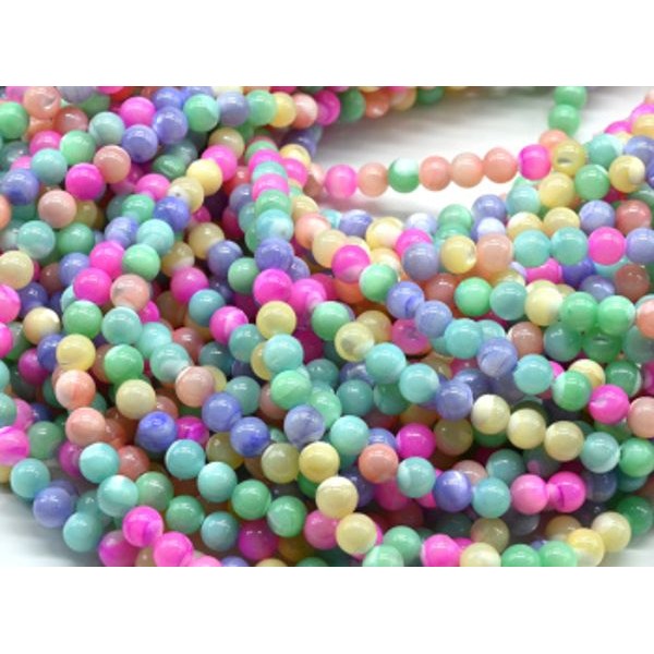 Бусины из перламутра тонированного шарик 4мм цвет ассорти, 39см, 92 бусины