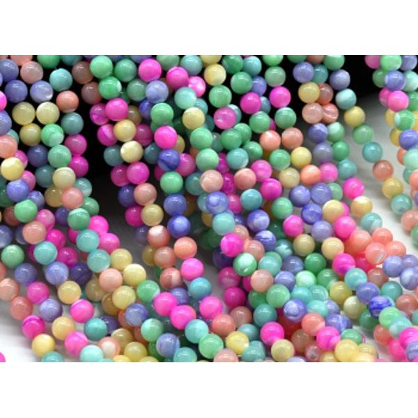Бусины из перламутра тонированного шарик 6мм цвет ассорти, 38см, 62 бусины