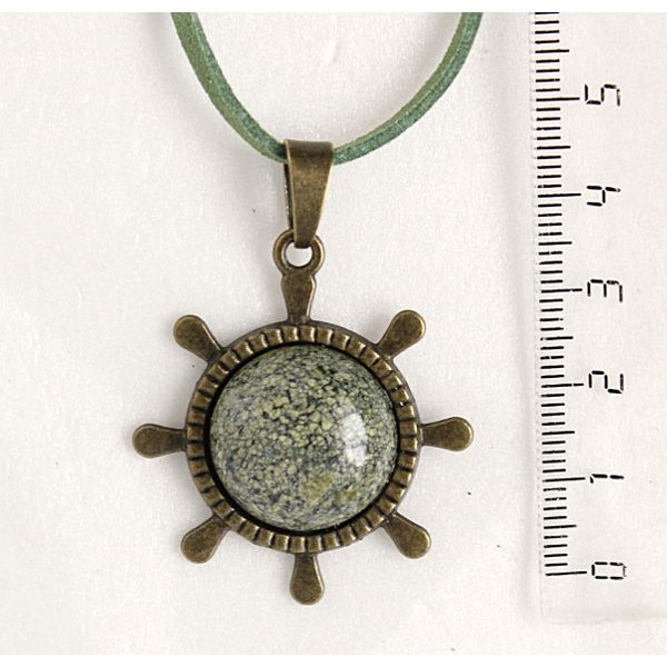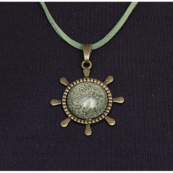 Кулон из гелиотиса (иск.), "штурвал", круг 20мм..