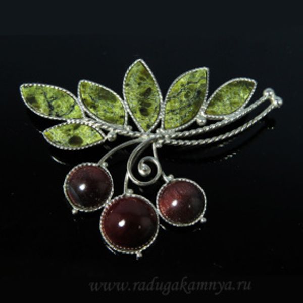Брошь змеевик, бычий глаз "Калина", 60*45мм.