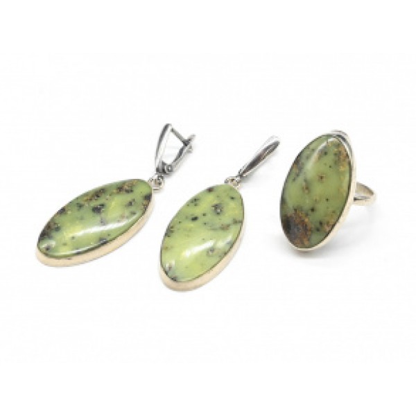 Кольцо и серьги из змеевика " Овал "