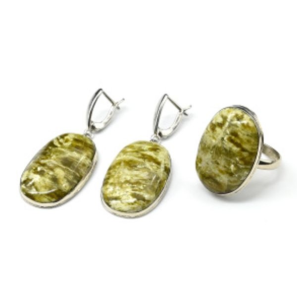 Кольцо и серьги с офитом " Грация "