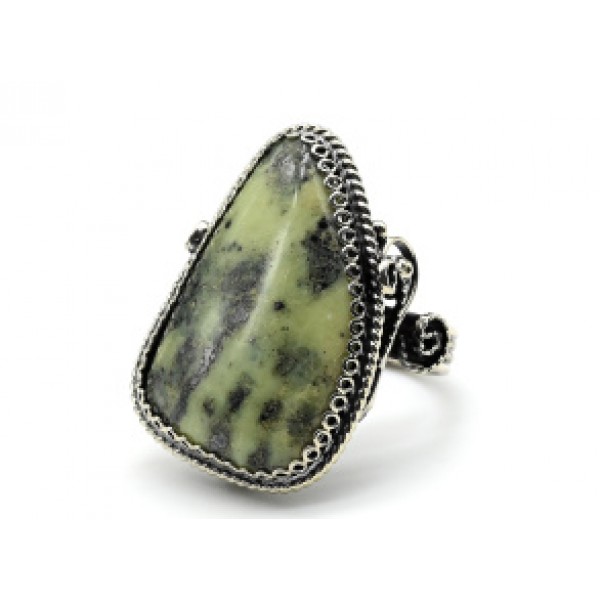 Кольцо из змеевика, литое широкое, цвет родиум, се..