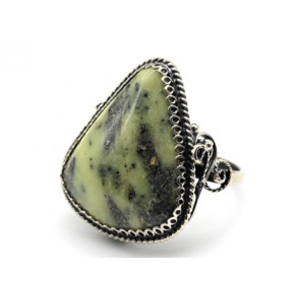 Кольцо из змеевика, литое широкое, цвет родиум, се..