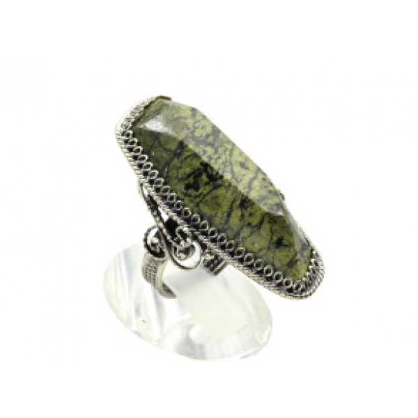 Кольцо из змеевика, литое широкое, цвет родиум, се..