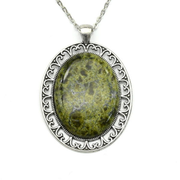 Кулон на цепочке овал 40*30мм со змеевиком, 70см