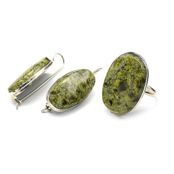 Кольцо и серьги змеевик "Овал"