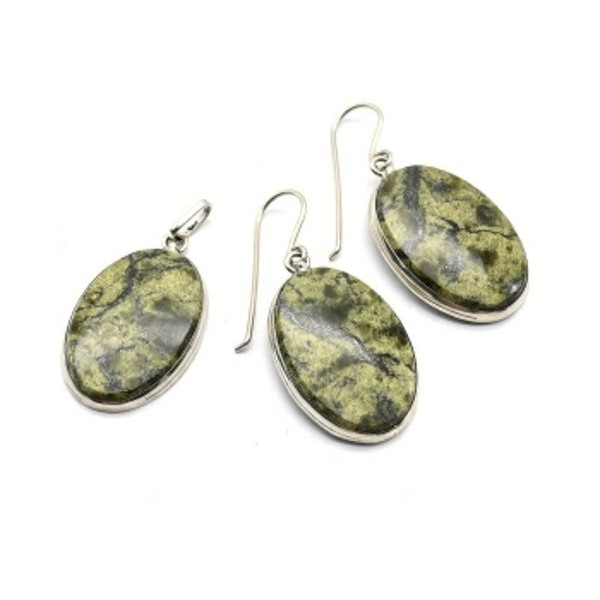 Кулон и серьги змеевик "Овал".