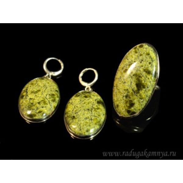 Кольцо и серьги змеевик овал