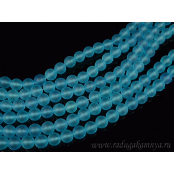 • Бусины из кварца тонированного шарик 12мм, цвет голубой, 39см, 35 бусин