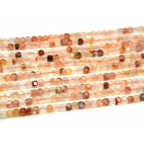 Бусины из клубничного кварца кубик гр.4мм, 39см, 90 бусин