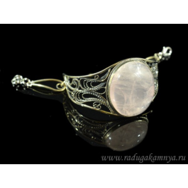 Брошь из кварца розового "вензель", основа 70х2.4мм, овал 18х13мм, подвеска кварц розовый