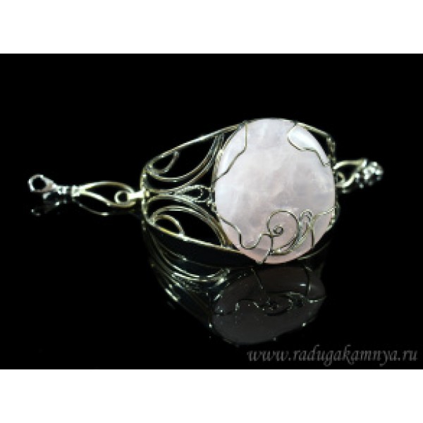 Брошь из кварца розового "вензель", основа 70х2.4мм, овал 18х13мм, подвеска кварц розовый