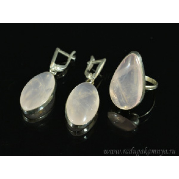 Кольцо и серьги с розовым кварцем, .