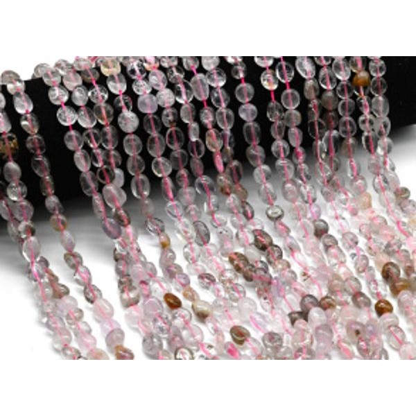 Бусины из кварца клубничного галтовка 5*8мм, 38см, 48 бусин