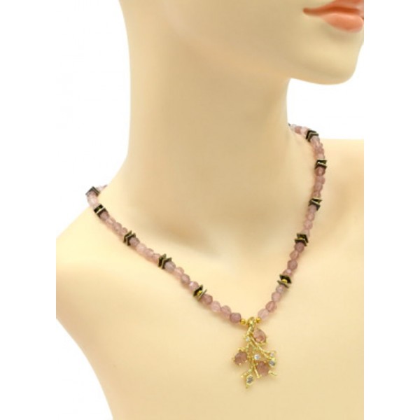 Бусы с подвеской из клубничного кварца шарик с гранями 5мм, 46см