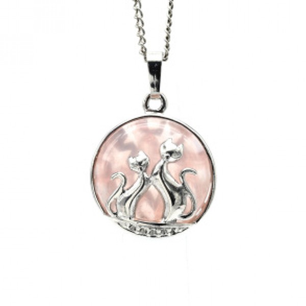 Кулон коты 22*22мм в металле с розовым кварцем