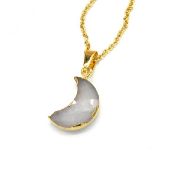 Кулон на цепочке с розовым кварцем Месяц 11*19мм, 45см