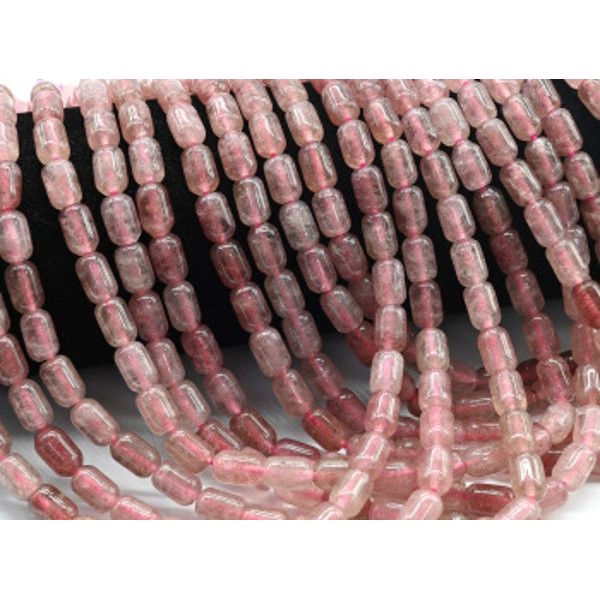 Бусины из клубничного кварца бочонок 6*9мм, 39см, 43 бусины